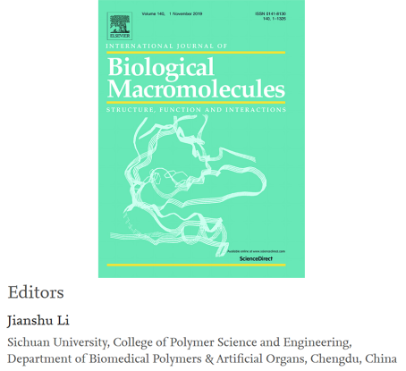 近日,色情直播 李建树教授应邀担任国际期刊International Journal of Biological Macromolecules期刊编辑。该期刊是爱思唯尔(Elsevier)旗下生物大分子领域的资深国际期刊 (创刊于1979年,IF =4.784),主要发表蛋白质、大分子多糖、糖蛋白等生物大分子结构-功能-应用研究等方面的工作,欢迎广大师生积极投稿。李建树教授基于长期的蛋白质启迪的医用高分子材料领域的研究工作,将主要负责该期刊蛋白质相关研究的审稿。