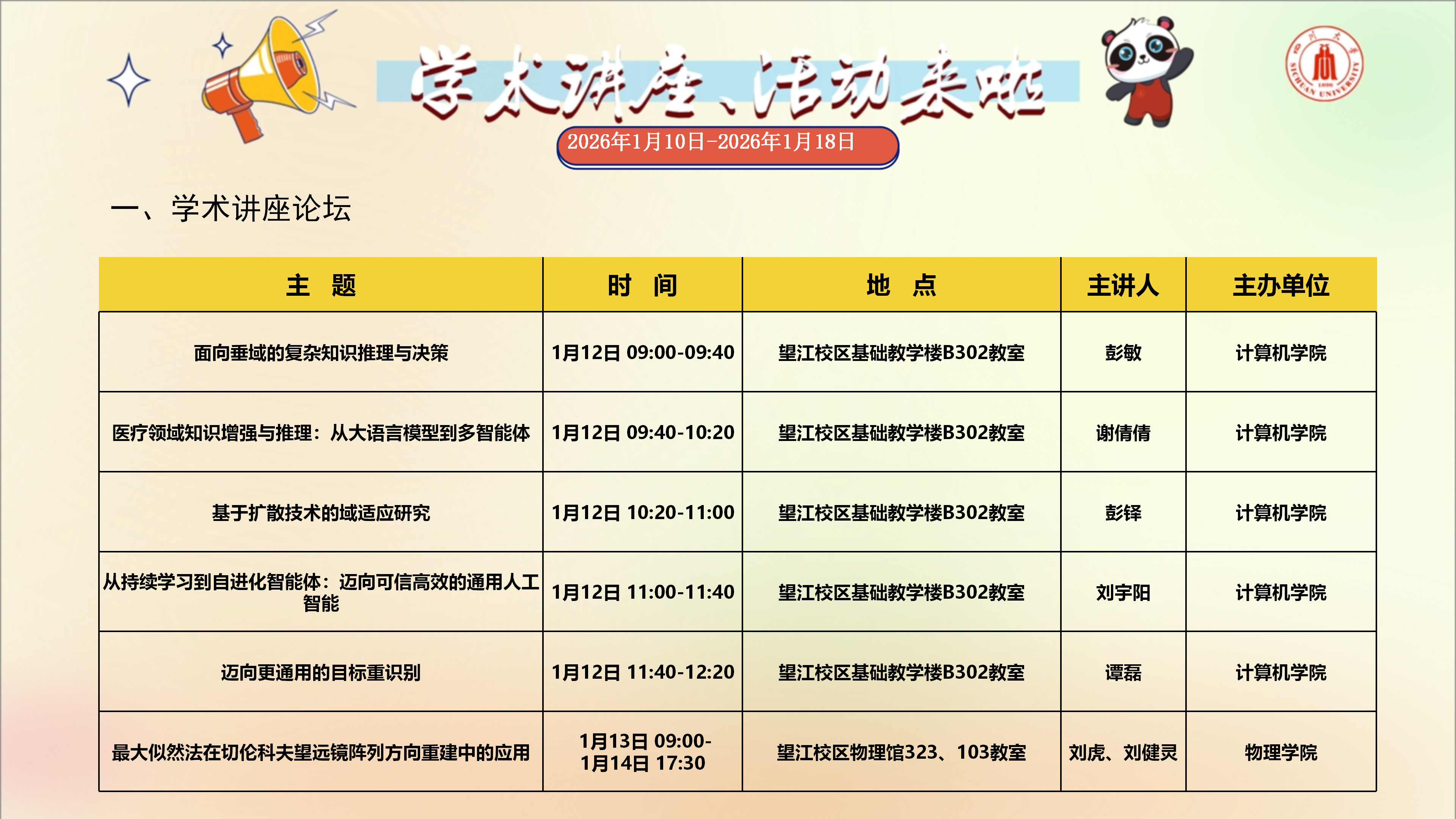 学术讲座预告(2026年1月10日-2026年1月18日)